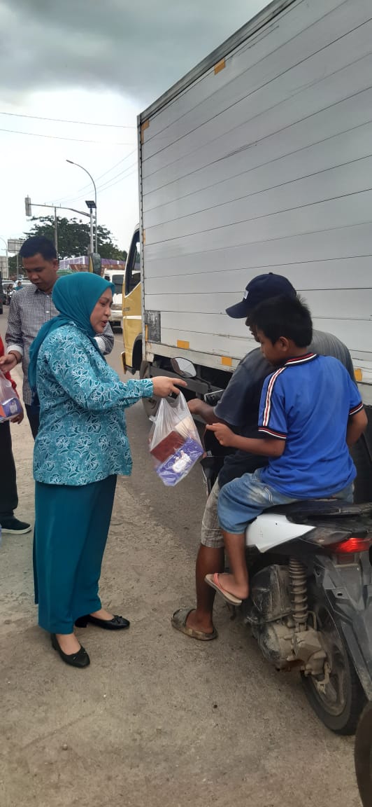 “Sebanyak 500 paket takjil yang besisi dari klak, kurma, dan minuman manis dan nasi kotak dibagikan kepada pengemudi, baik kendaraan pribadi maupun angkutan umum, yang tengah melintasi dijalan tersebut,” kata Hj. Rita Suryani.