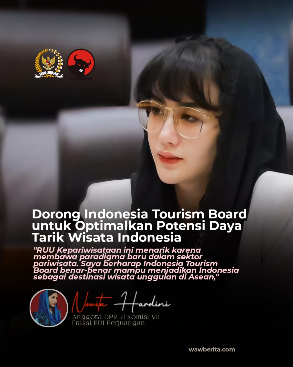 “RUU Kepariwisataan ini menarik karena membawa paradigma baru dalam sektor pariwisata. Saya berharap Indonesia Tourism Board benar-benar mampu menjadikan Indonesia sebagai destinasi wisata unggulan di Asean,” ujar Novita dalam Rapat Panja RUU tentang kepariwisataan komisi VII DPR RI, Kamis (13/3/2025).