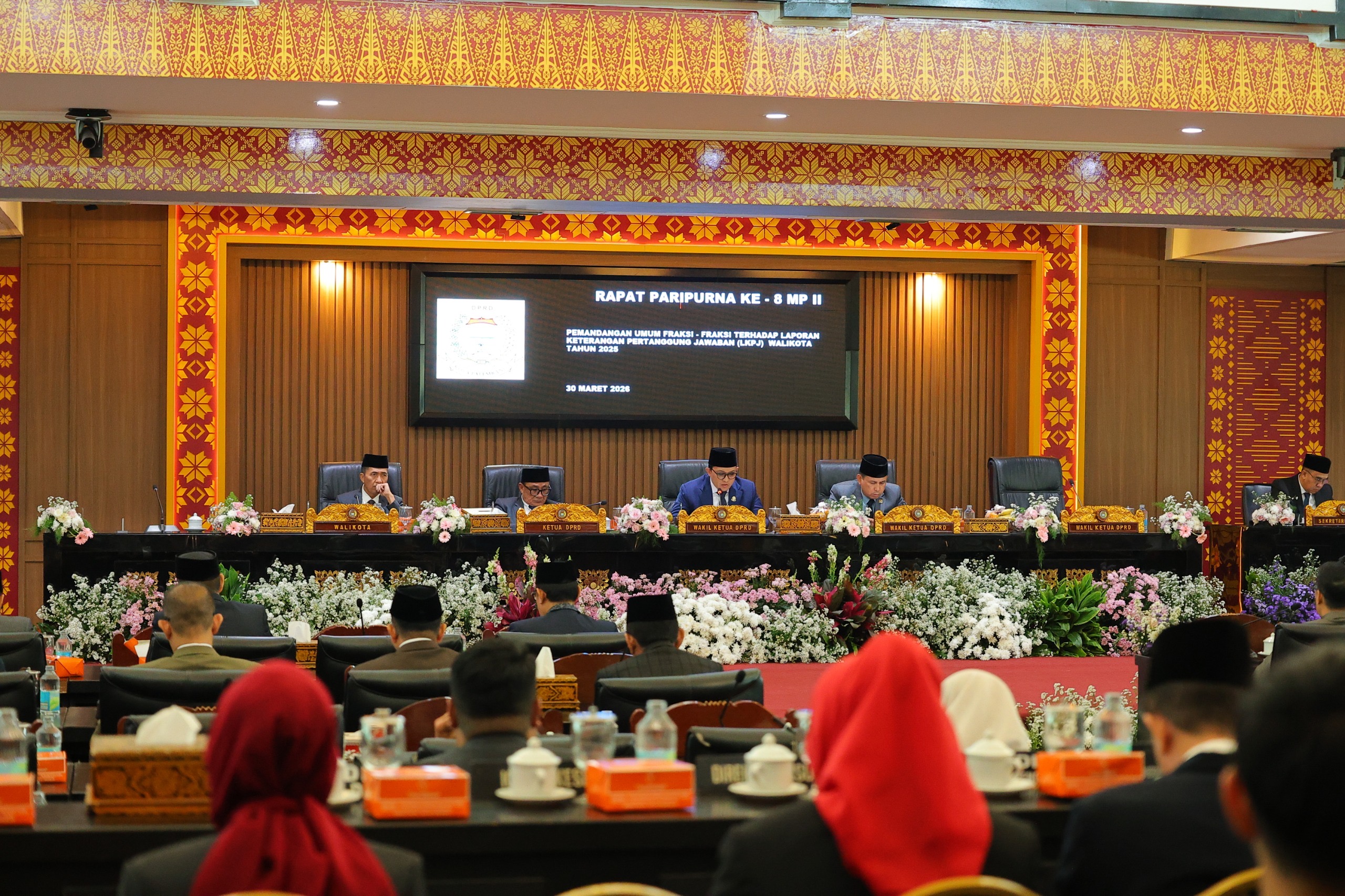 PALEMBANG – Wali Kota Palembang, Ratu Dewa, menghadiri Rapat Paripurna ke-8 Masa Persidangan II DPRD Kota Palembang yang digelar di Gedung DPRD, Jalan Gubernur H.A Bastari, Senin (30/3/2026). Rapat yang dipimpin Wakil Wali Kota Hari Apriansyah ini membahas pemandangan umum fraksi-fraksi terhadap Laporan Keterangan Pertanggungjawaban (LKPJ) Wali Kota Tahun 2025.